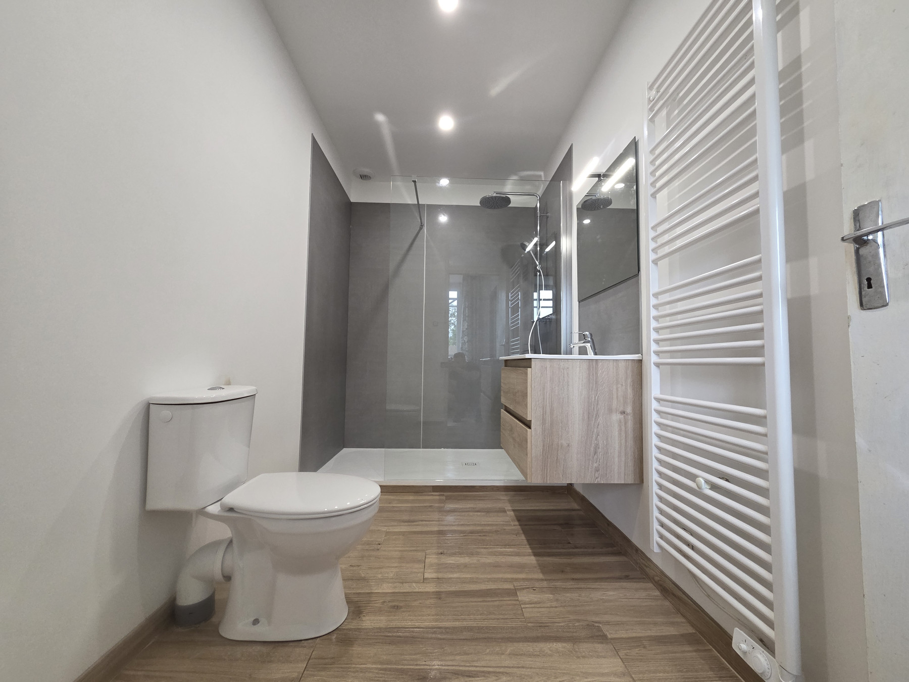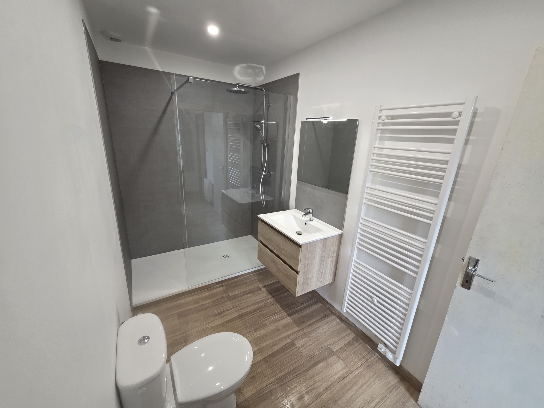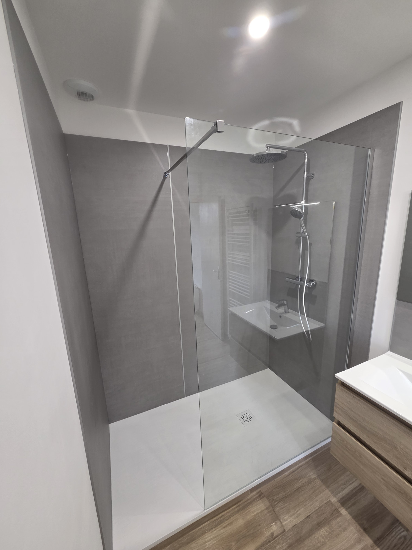 Dépose de la l'ancienne baignoire, création de la douche à l'italienne avec pose du nouveau mobilier sanitaire.